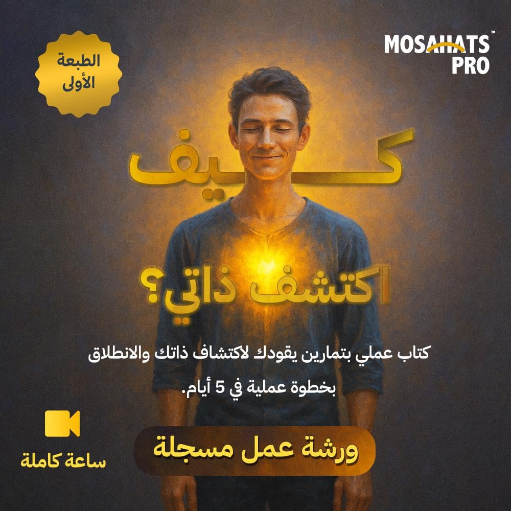 كتاب « كيف تكتشف ذاتك؟ هو كتاب رقمي يقدم لك خطة عملية من 5 أيام لاكتشاف ذاتك، وتحديد الخطوة الأولى التي تشبهك. خطوات وتمارين بسيطة ليست معقدة، ولكن تكتشف بأنك تمتلك من المهارات و القدرات التي تحتاجها الآن لتبدأ ويمكنك استغلالها ولا تجعلك تتأخر في الانطلاقة نحو حياة التي تستحقها.